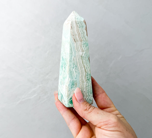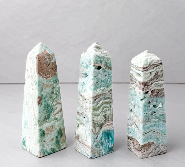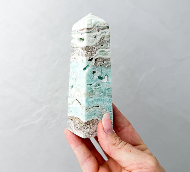 Each Blue Aragonite Tower is unique, with natural variations in its sky-blue tones, soft marbling, and organic patterning. We hand-pick every piece for quality, energy, and beauty so you receive a tower that truly resonates.