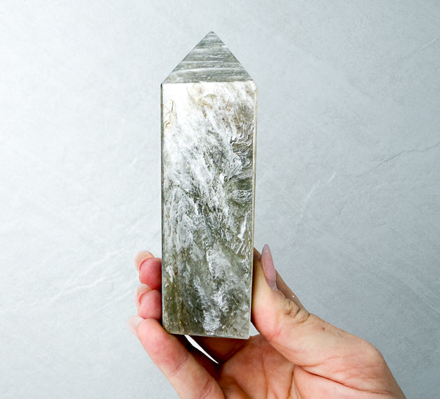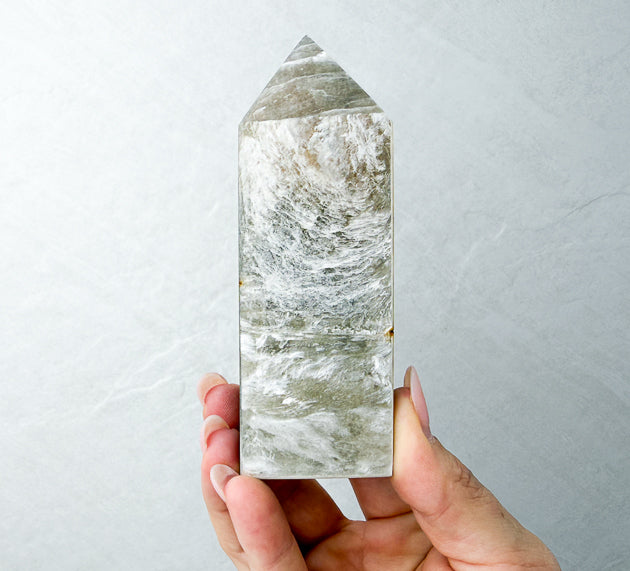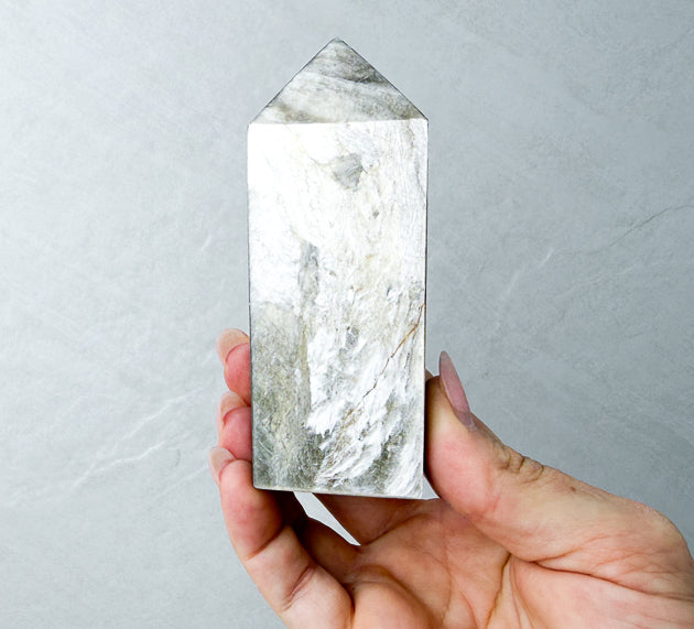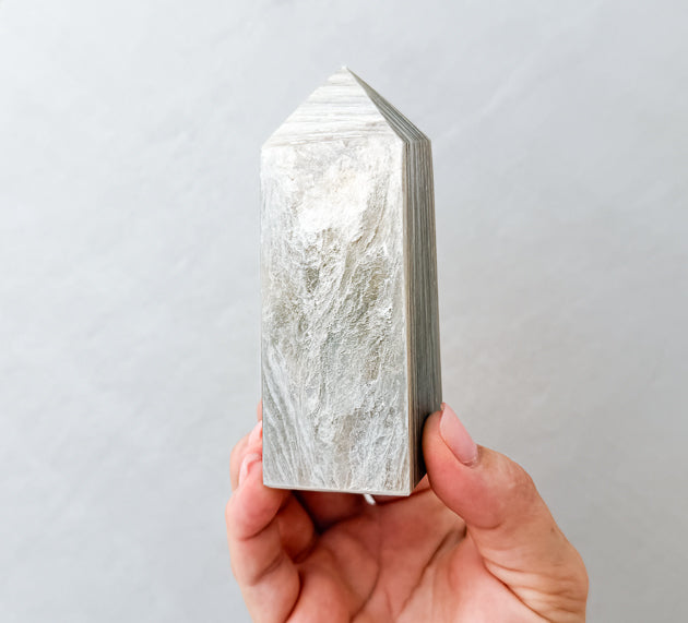 Position your Golden Mica Tower in your workspace or ritual area to amplify confidence, encourage self-expression, and reflect stagnant energy away from your space.