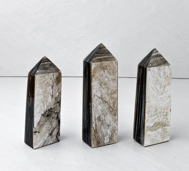 Ethically sourced from Madagascan artisans, each tower is hand-cut and selected for its golden shimmer, structure, and natural brilliance.